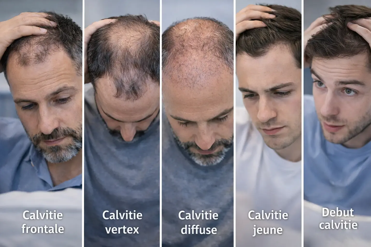 Dans cet article, on vous aide à comprendre les différents profils : calvitie frontale, calvitie vertex, calvitie diffuse, calvitie jeune, à repérer les signes de calvitie, et à choisir la bonne stratégie (suivi médical, traitements, ou greffe quand c’est indiqué).